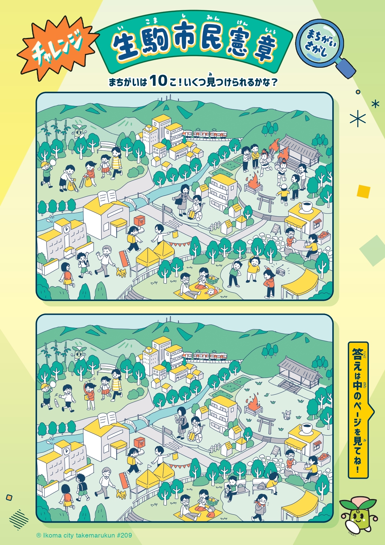 市民憲章を楽しく学べる「まちがいさがし」入りの啓発リーフレットを作成しています。 ご家庭でも、学校でも、ぜひチャレンジしてみてください!