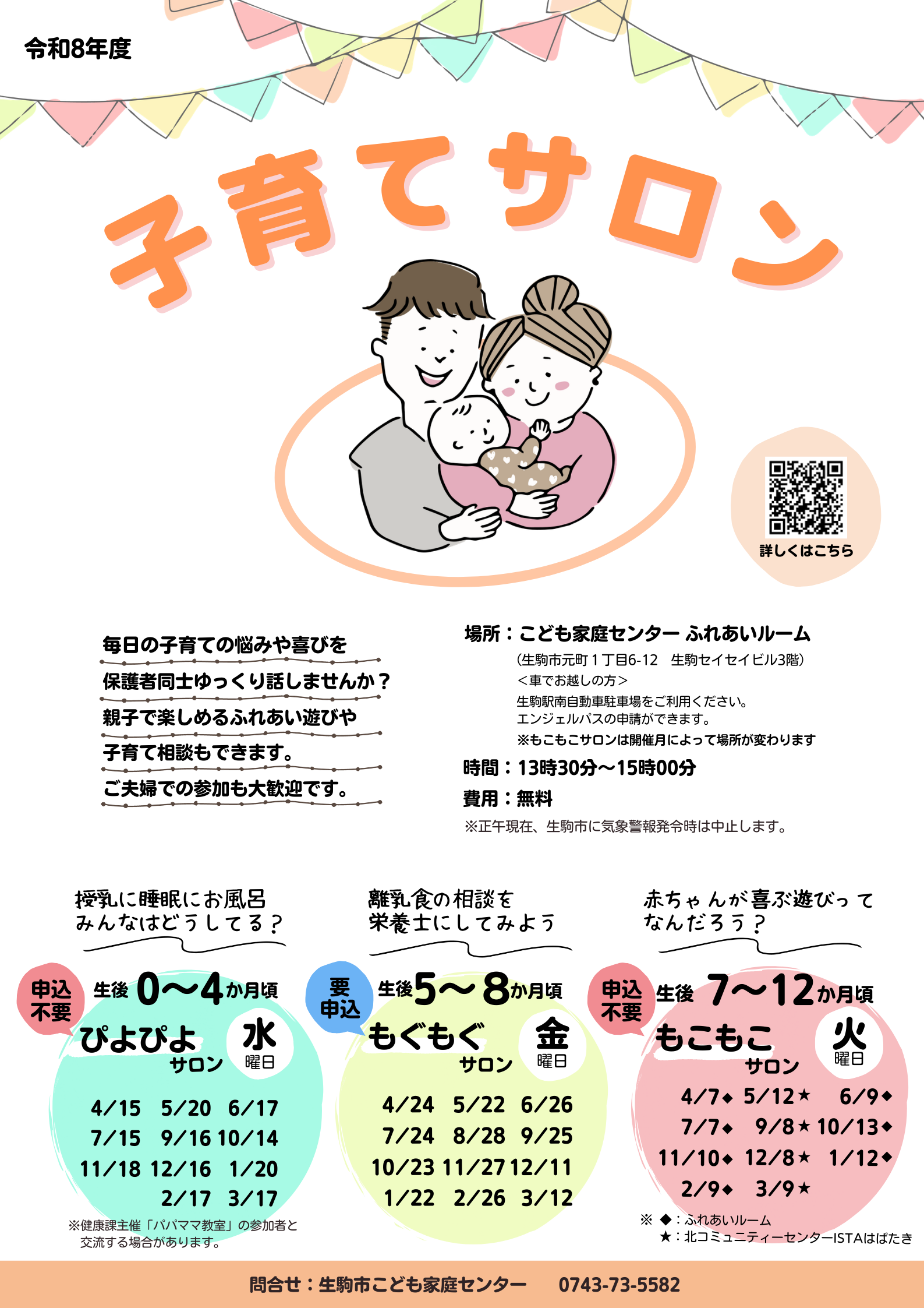 市の子育て情報は、広報「いこまち」、生駒市ホームページの他、X(旧Twitter)や電子版親子手帳アプリ「母子モ」でも発信しています。