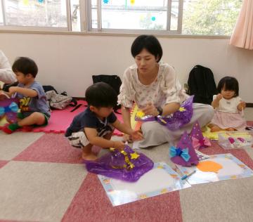10月の「おでかけみっき」は、ハロウィンごっこを行いました。ハロウィンのお話を聞いて、親子でおばけの手遊びをした後、マントや帽子を作って魔法使いに大変身‼みんなよくがんばったね!11月17日は手作り楽器で遊びます。お楽しみに!