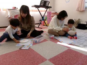 11月の「おでかけみっき」は、りんごがころころの絵本を見て手遊びをした後、みんなで手作り楽器にチャレンジ!紙皿のタンバリンやカップの太鼓を作りました。音楽に合わせてみんなで鳴らして楽しかったね!12月15日はクリスマスグッズを作ります。お楽しみに!
