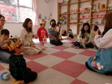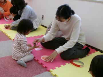 アドバイザーと一緒に作ったり、ふれあい遊びをしたり、ベビーマッサージや絵本を読んだりします。午前の部:10時30分~11時30分 と 午後の部:13時30分から14時30分の2回です。その後は、子どもを遊ばせながら親同士の交流を深めたり、日頃の子育てで感じる喜びや不安を話したり、また、児童館内のランチルームで昼食やおやつも食べられます。
