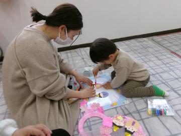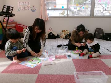2月の「おでかけみっき」は、おひなさまを作りました。「おひなさまがうまれたよ」の紙芝居を見てみんなでおひなさまを作ったよ。おだいりさまとおひなさま二人並んでニコニコ笑顔。またお家で飾ってね。次回3月16日(月曜日)は体をいっぱい動かして遊びます。お楽しみに!