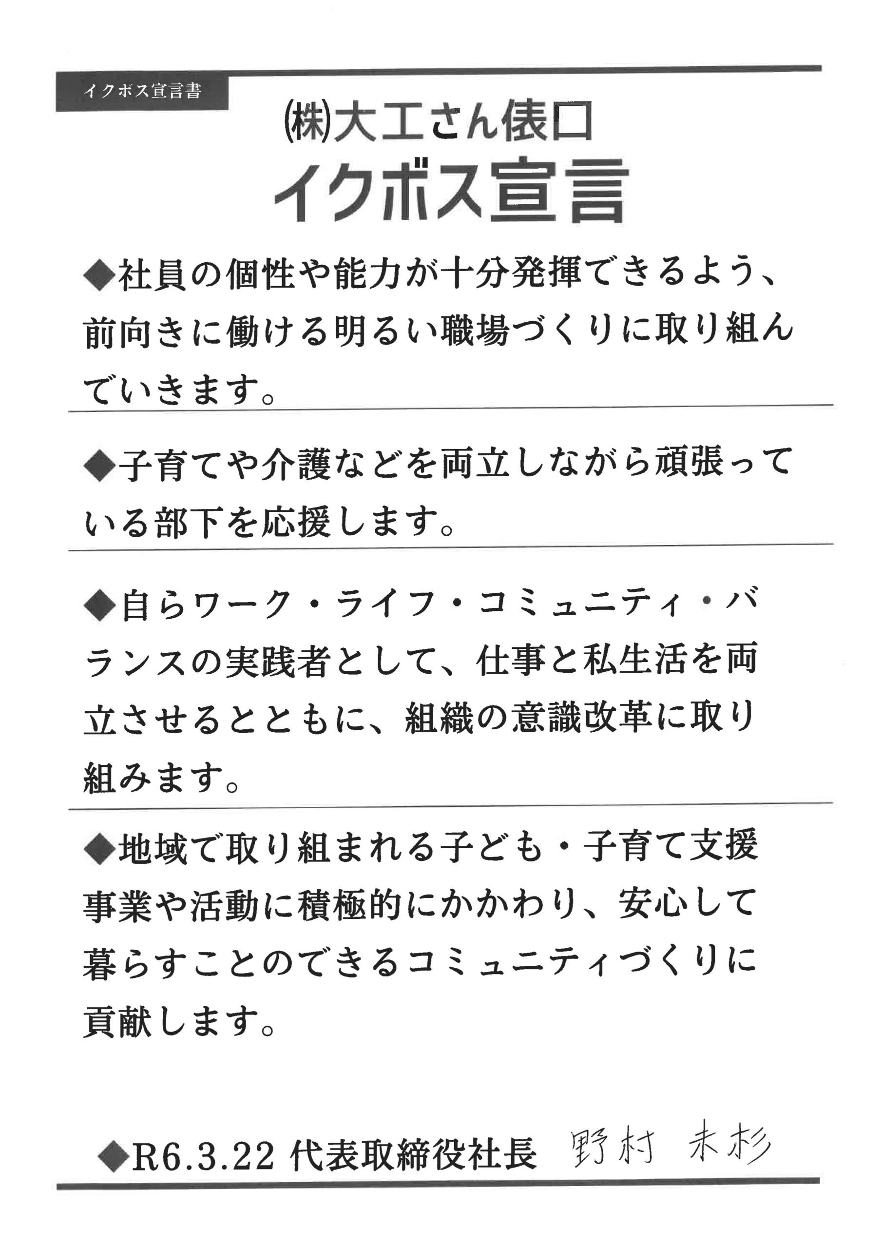 イクボス事業所(株式会社大工さん俵口)
