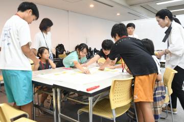 市はテーマを決めてこどもたちの考えやアイデアなどを教えてもらい、まちづくりに取り入れていきます。