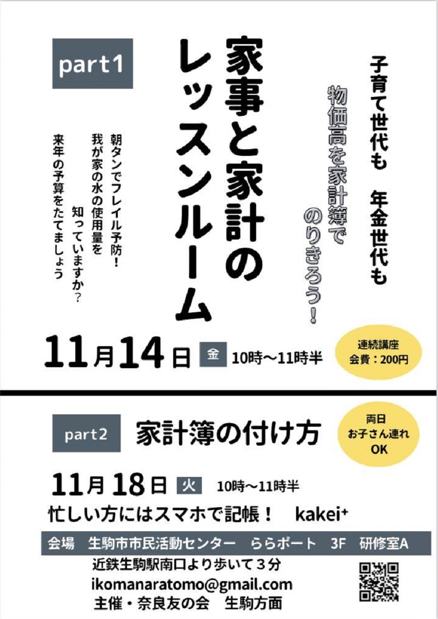 - 11月14日(金曜日) 「家計簿の話と生活の工夫」