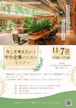 健康経営やSDGsの視点を踏まえながら、働きやすい職場環境づくりを伝えるセミナーです。