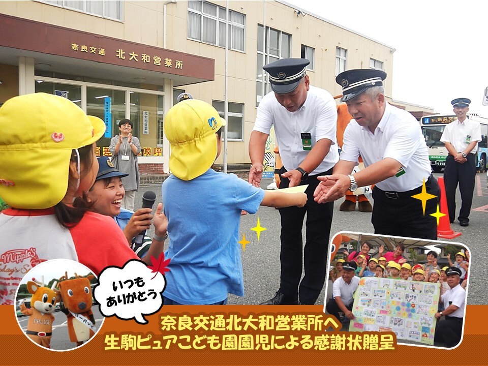 9月25日(木曜日)いつもありがとう!~奈良交通/北大和営業所へ 生駒ピュアこども園園児による感謝状贈呈~