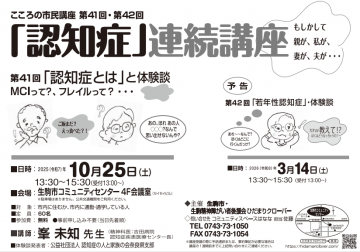 (注意)「認知症」連続講座として、令和8年3月14日(土曜日)に、第42回こころの市民講座「『若年性認知症』と体験談」を開催予定。