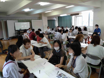 保護者はまず、3~4人のグループで、お子さんが夢中になっていること、自身のマイブーム、お子さんの成長を感じた出来事を話題に、一人ずつ自己紹介をしました。グループ内のお子さんの事が少しわかってきたところで、たけのこスタッフが、「忠告を聞かずに失敗した子どもを親が強く叱責する」という朗読劇を披露。保護者にも経験があるのか、迫真!?の演技に笑いも起こりました。この劇をもとに、子育てでイラっとしたことや、叱りすぎて後悔したことをグループで話し合いましたが、子育ての悩みや苦労はすべての保護者にあり、同じように苦しい思いをしていることを分かり合えたグループトークになりました。