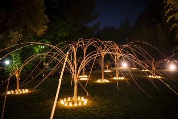今年も、里山の静かで穏やかな空気と、ろうそくの光に照らされた竹の造形物と行燈で特別なひとときをお過ごしいただけます。