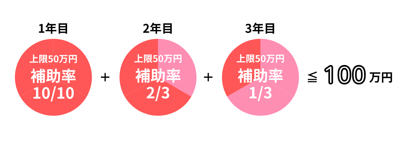 3年間で最大100万円交付可能で、各年度の交付上限金額は50万円です。