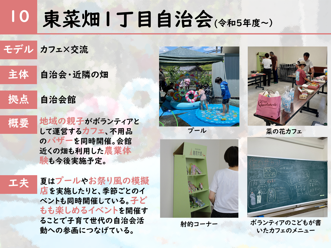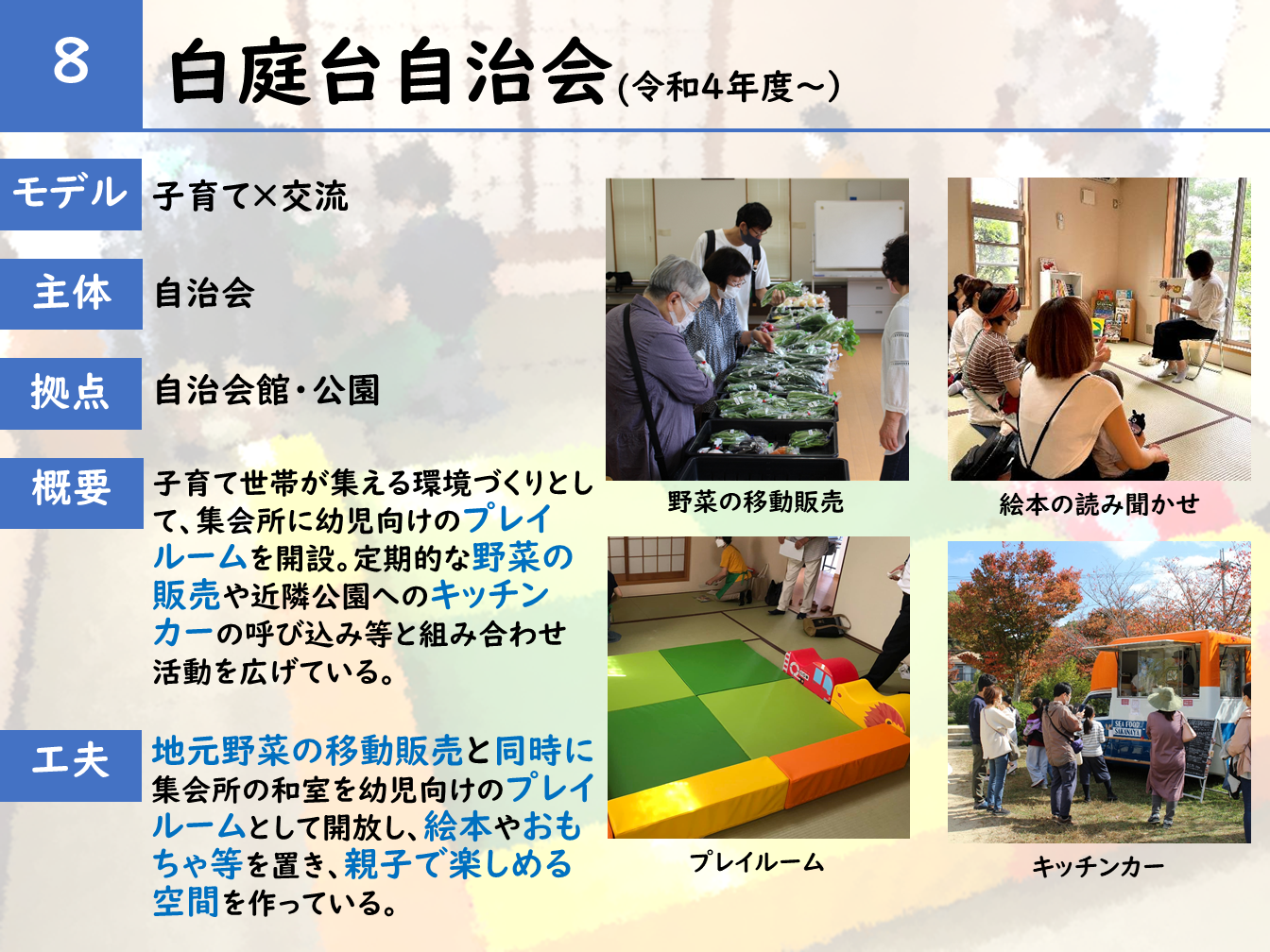 地域拠点(集会所や公園)で展開されるまちのえきのコンテンツの1つとして活用いただくことを想定しています。
