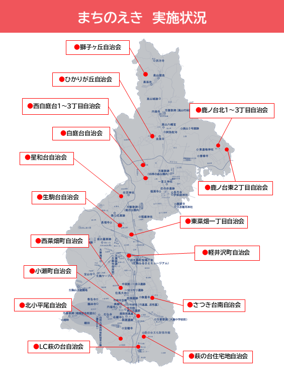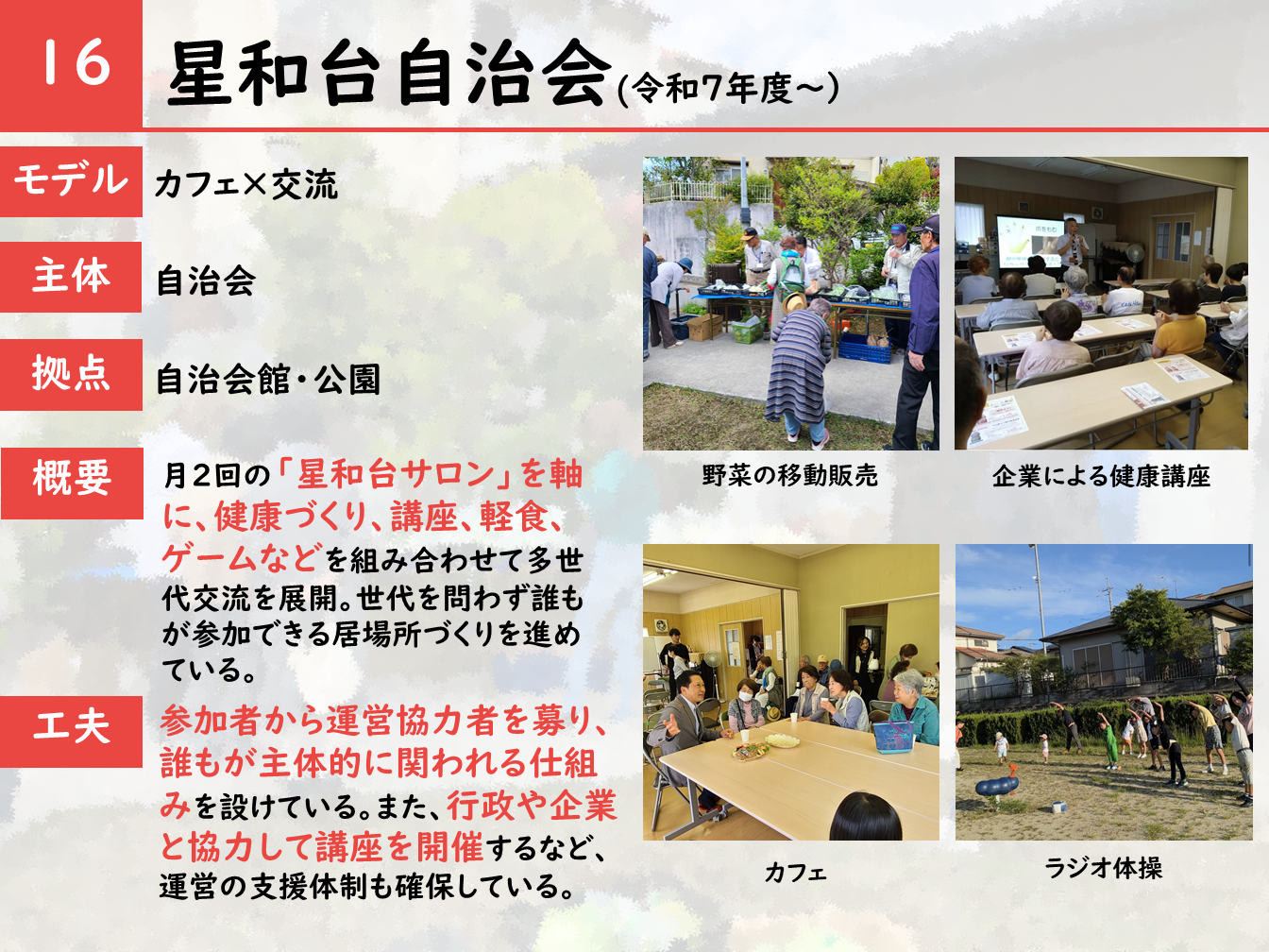 令和7年10月1日現在で20自治会・16拠点で実施中です。