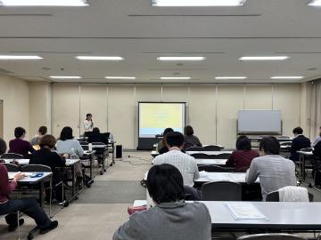 講義パートのトップバッターは生駒市職員による「生駒市の現状・基礎データ」です。生駒市のこどもの居場所の現状や出生数、共働き世帯数の推移などのデータを基に、こどもの居場所の必要性についてご説明しました。