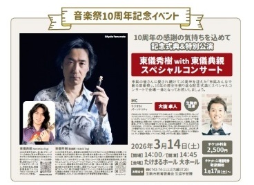 3月14日(土曜日)…10周年の感謝の気持ちを込めて「東儀秀樹with東儀典親スペシャルコンサート」