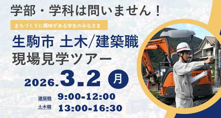 【学部・学科は問いません!】生駒市の技術職(建築・土木)の現場見学ツアーを実施します!(令和9年4月1日採用)