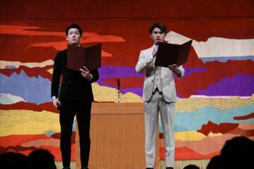 「開式のことば」では、二十歳のつどい運営委員の植村 颯太さん、平山 創太さんが二十歳のつどいの開式を宣言しました。