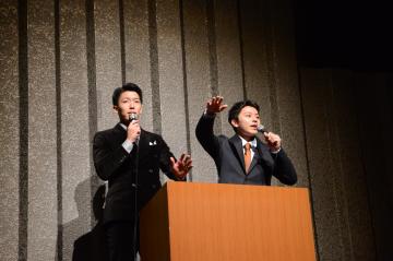 「生駒山麓太鼓保存会」の皆様による演奏の前と、大抽選会の前には、二十歳を迎えるみなさんからXに「#生駒市二十歳のつどい」をつけて投稿していただいたコメントを紹介しました。二十歳のつどい運営委員の荒木 壮太さん、植村 颯太さんが紹介を担当し、会場を盛り上げました。