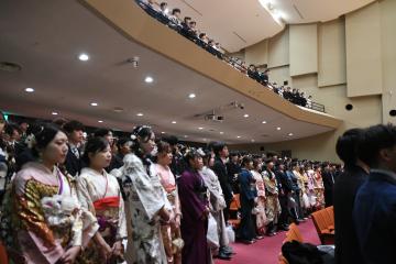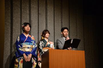 生駒市長から、「この機会に、今まで一番お世話になった方に感謝の言葉を伝えてください」「自分で選ばなくてはならないこと、そのために力をつけなくてはならないことがたくさんありますが、スリリングで楽しい最高な人生を歩んでください」(式辞より抜粋)と、二十歳を迎える方々にエールを送られました。