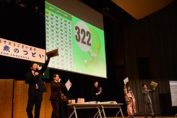 大抽選会の賞品は、市内の27事業者様からご協賛いただきました。賞品が紹介されるたびに会場は大いに盛り上がり、最終的に約90人が当選しました。