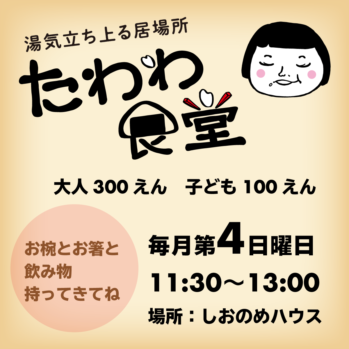 毎月第4日曜日に親子で気軽に立ち寄れる食堂を開いています。みんなで食卓を囲み、楽しく交流しながらいっしょにごはんを食べましょう。