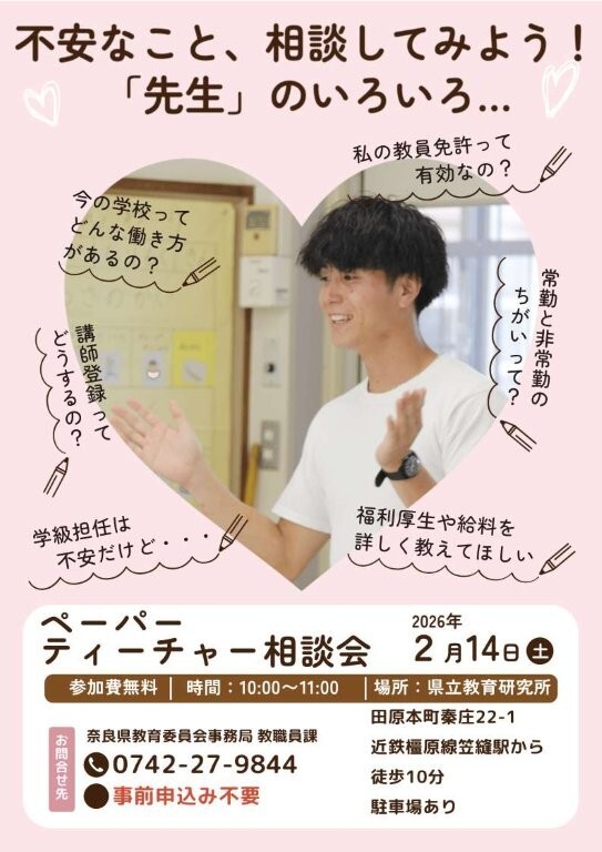 奈良県教育委員会では、ペーパーティーチャー相談会を実施します