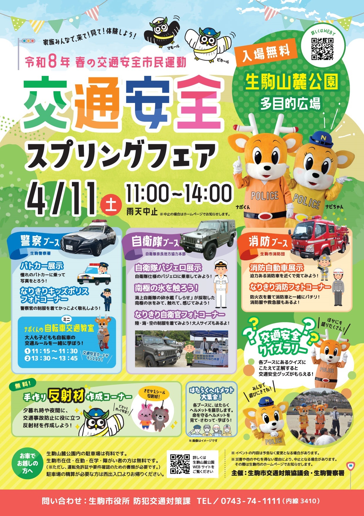 電話: 0743-74-1111 内線(生活安全係:3410、公共交通係:3420)