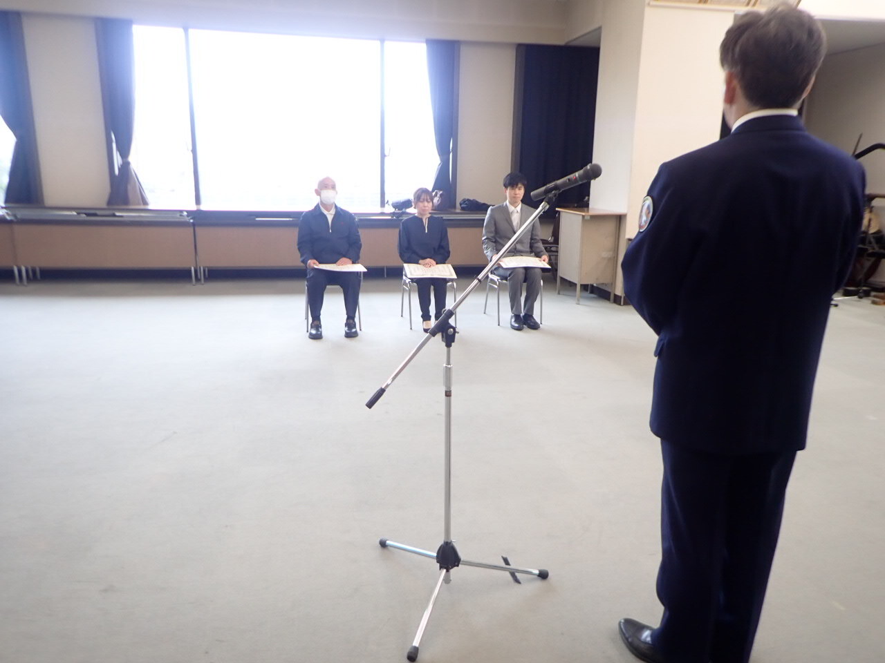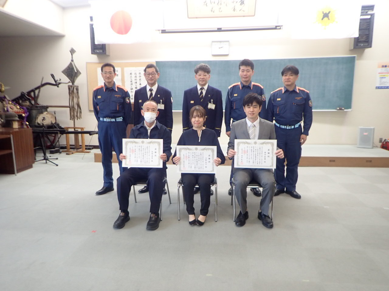 令和8年4月15日(水曜日)消防本部において、救命のリレーで尊い命を救った3人の救急活動協力者に対し、生駒市消防長から感謝状を贈呈しました。