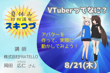 【8月21日開催】「スキつづ。(4)」 VTuberってなに?「アバターを作って、実際に動かしてみよう!」