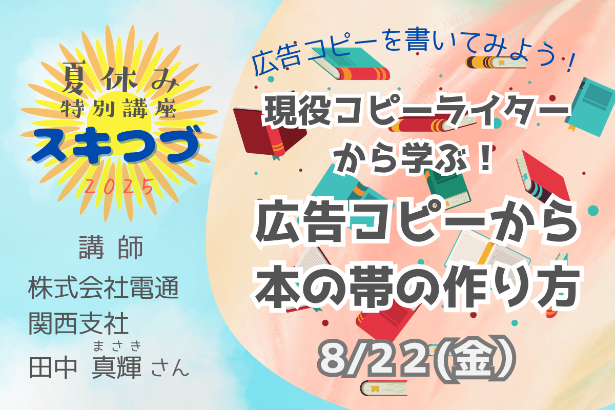 【8月22日開催】「スキつづ。(5)」 広告コピーを書いてみよう!「現役コピーライターから学ぶ!広告コピーから本の帯の作り方」