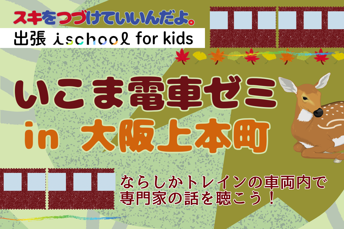 【11月15日開催】出張ischool for kids スキつづ。「いこま電車ゼミin大阪上本町~ならしかトレインの車両内で専門家の話を聴こう!」